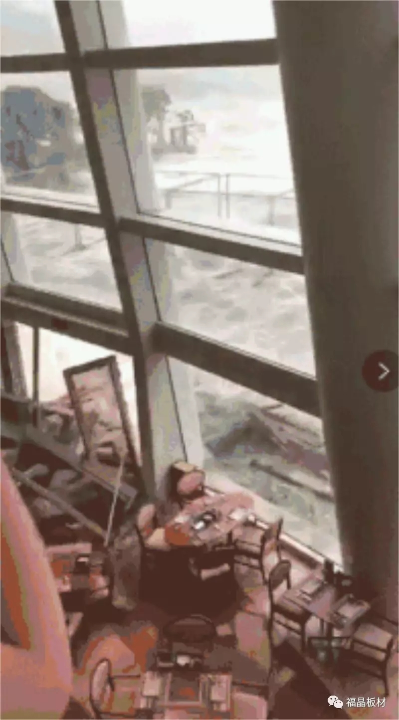 大梅沙京基喜来登酒店观景餐厅大门,被海浪冲垮: