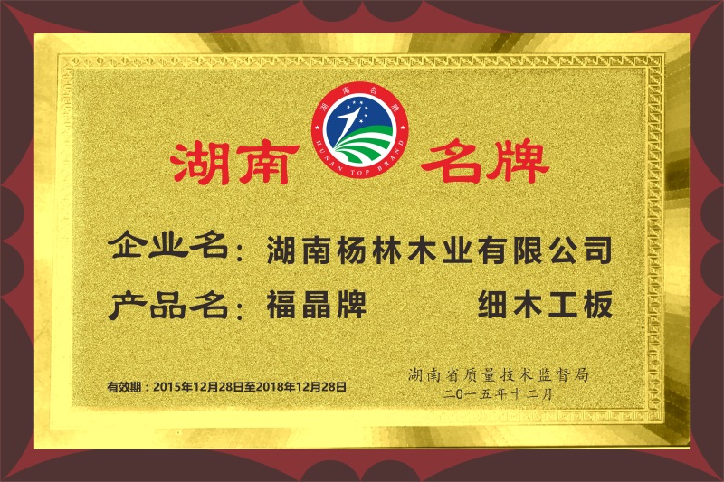 - 喜讯︱福晶板材荣获“湖南省知名品牌”称号