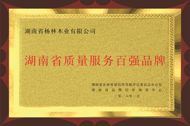 湖南省质量服务百强品牌