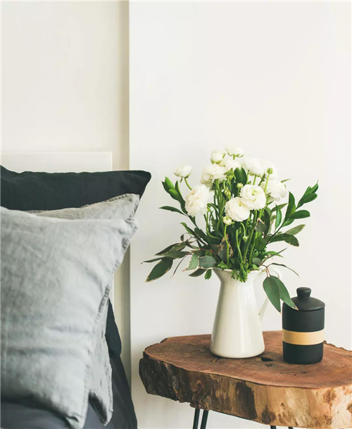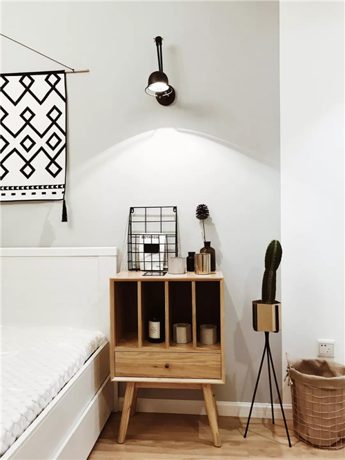 小茶几也是床头柜的选择之一,移动方便,储物面积也更大,还能变身成卧室的临时工作桌。在有必要的时候也可以搬回客厅招待客人。
