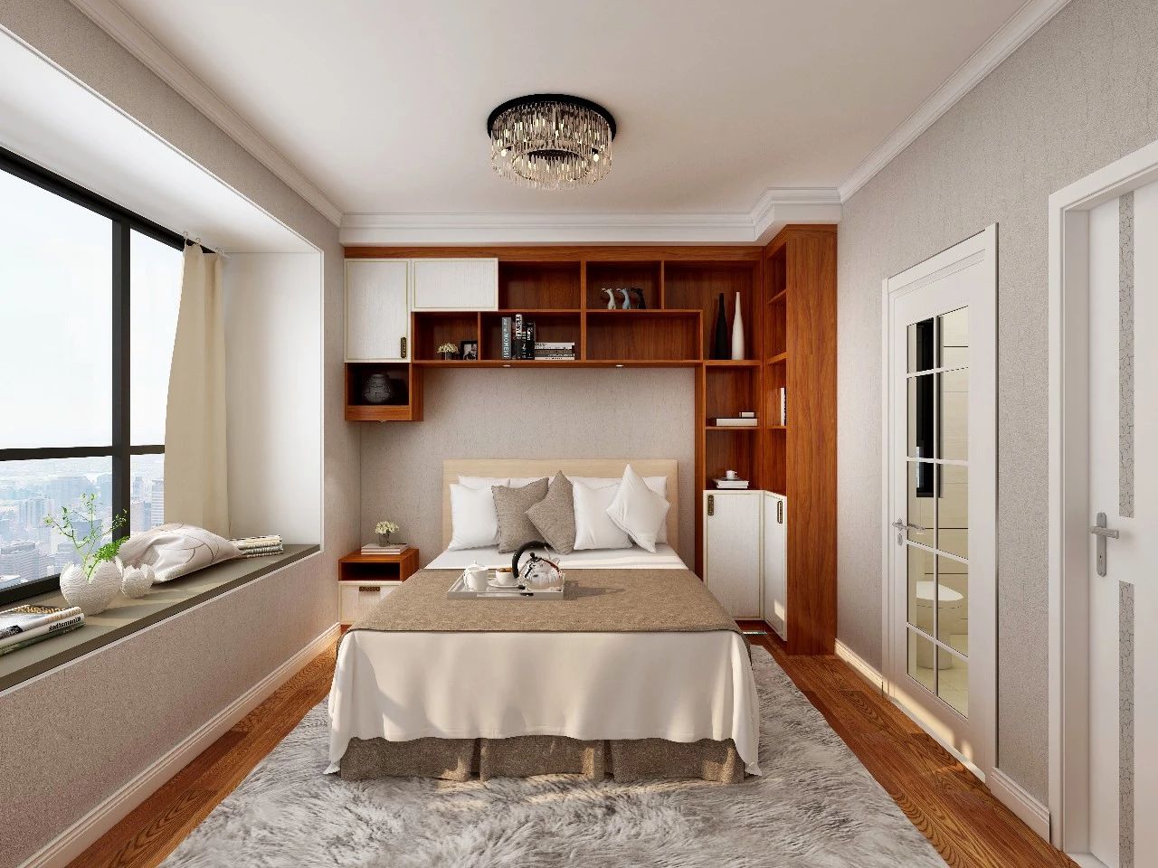 主卧配有朝东大飘窗,心理学研究表明,卧室中带有朝东的窗户会有利于人的身体健康,因为逐渐上升的太阳会自然唤醒沉睡的人。
