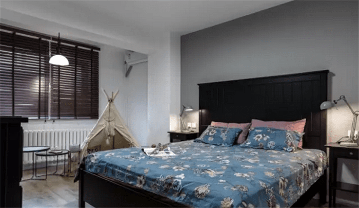 主卧延续了居室的粗旷质感,阳台的小帐篷增加了小情调,坐在小帐篷里享受零食,是不是很惬意!