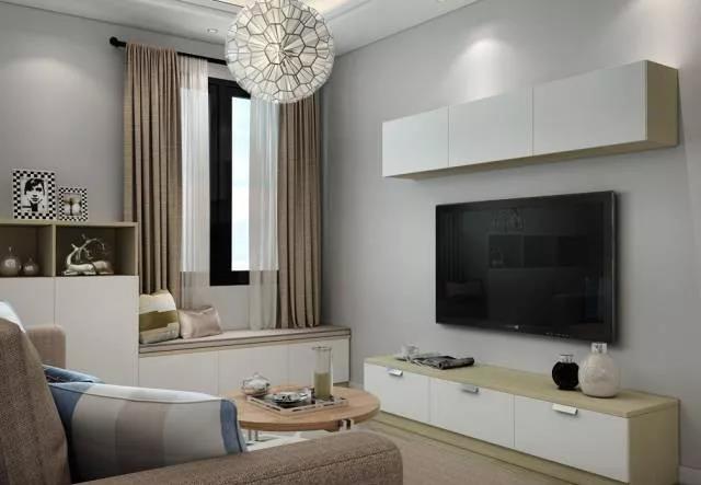 一字型电视柜和格子储物柜大概是最适合小户型的设计了。墙面上悬吊柜,或掩门柜,或搁板层,在充实墙面视觉同时增加了收纳空间,一切都刚刚好!