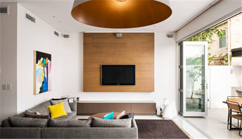 2、成品的木饰材料来打造电视墙,不仅仅在风格方面上能够相一致,并且在如何一个地方都不会出现不协调的地方。现在运用最多的技术就是在板材上开放漆,然后把它贴到墙上,这样在施工的时候就不会有很多的麻烦,也不用在上面进行刷漆,对我们的家居环境也是一个提升。