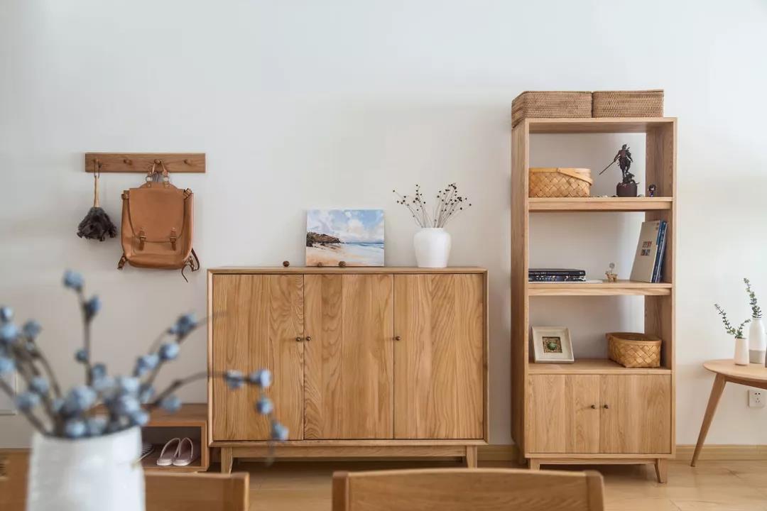 日式家具的特点就是压低一切重心,比如茶几电视柜甚至玄关口的鞋凳都做成低矮的样式。日式风格的极简感,就是来源于让家具的存在感降低。而且大概是起源于茶室席地传统,就算是当代日式家具,整体也十分低矮。重点就是要排得整整齐齐。