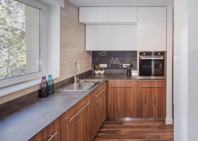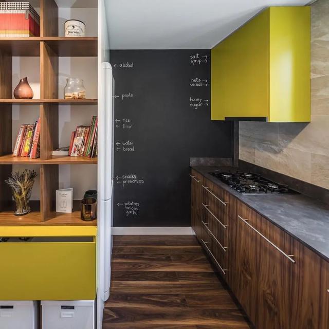 黑板墙的设计,是厨房的亮点之一,在这里可以记录各种普通食谱或者是购物清单,提醒自己一些生活的注意事项,让墙壁的空间不再闲置。