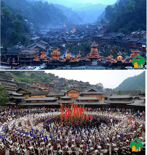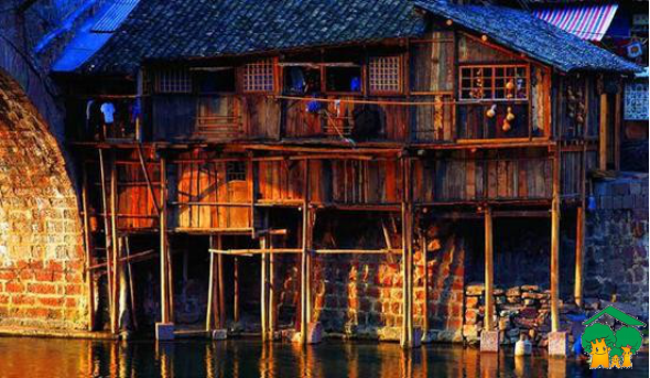 (2006 年苗寨吊脚楼营造技艺经国务院批准列入第一批国家级非物质文化遗产名录)