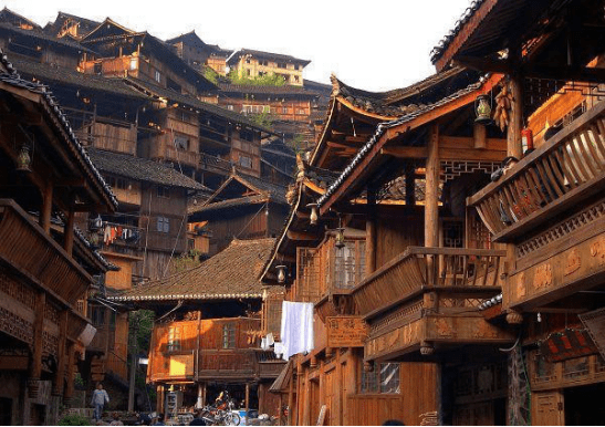 香杉木的广泛使用,体现了老一辈人的勤劳与智慧。恰到好处适用的使用,或似宫殿,或状长廊,或如亭榭、或胜楼阁。穿过夹拥的石板巷子那错落有致的座座木楼、上下相倚、左右相排、层叠展现的格局,赋予美丽的村寨行云流水般的诗情画意。