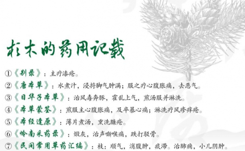 万年保健:中国流传多部医药宝典对杉木的药用记载《唐本草》、《本草蒙荃》、《岭南采药录》等所记:杉有“避秽,止痛,散湿毒,下逆气,心腹胀痛”之效。香杉含独有香杉醇,可拒虫蛀、耐潮防腐,久居其域,能除疲、缓迫,令人神清气爽,淡淡香味,犹如甘醇清爽,等药用价值。