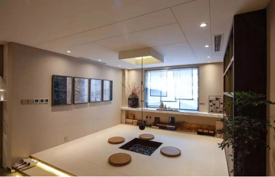 Tips:在榻榻米上,平日里可邀上好友,品茶、对弈、聊天,承担着休闲茶室的功能;或是在工作区域感到疲惫,那么移步榻榻米,无论是闭目养神还是品茶,无疑都是缓解压力的方法。
