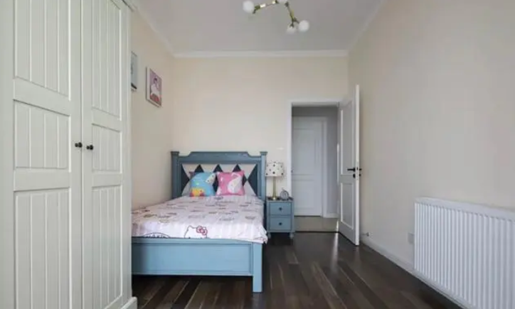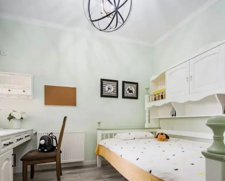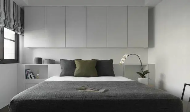 卧室最重要的是床,最占地方的也是床,所以我们需要给其做减法,靠墙的小床,是减少床占地的最直接的方法。
